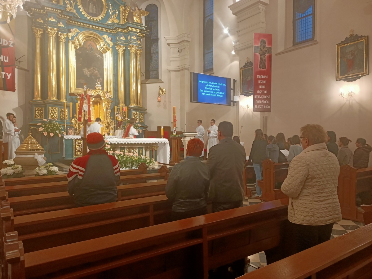 Trwając w radości paschalnej zgromadziliśmy się 6 maja, w kolejny pierwszy piątek miesiąca, na młodzieżowym „Młodym Piątku”. Naszym gościem był ks. Marcin Jakubiak, który w konferencji o Bogu bogatym w miłosierdzie, w czasie adoracji i w uroczystej Mszy świętej pomógł nam zbliżyć się do tajemnic głębi Miłosierdzia, które jest dla nas drogą do Boga, uzdrawiającą prawdą i jedynym źródłem życia.