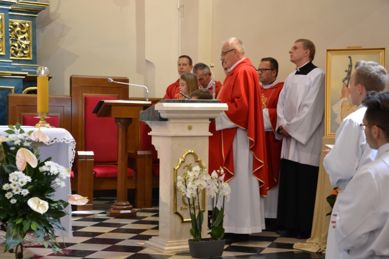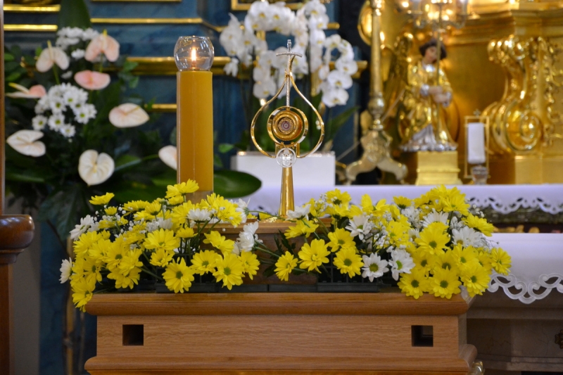 Następnie procesja z relikwiami udała się wokół kościoła i głównym wejściem krew św. Jana Pawła II została wniesiona do świątyni.