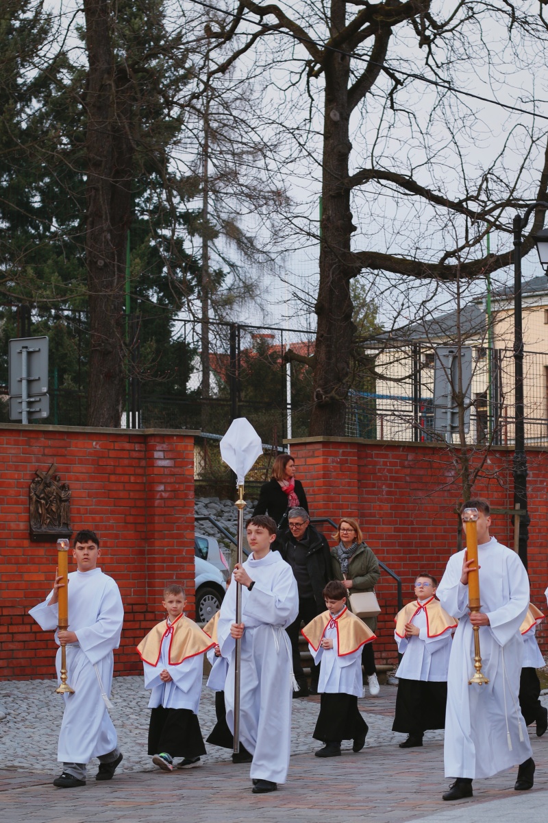 Uroczysta Msza Wieczerzy Pańskiej w Kościele Narodzenia Najświętszej Maryi Panny w Myślenicach rozpoczęła Święte Triduum Paschalne. Liturgii o godz. 18:00 przewodniczył Ksiądz Biskup Janusz Mastalski, a licznie zgromadzeni wierni wspólnie przeżywali pamiątkę ustanowienia Eucharystii i kapłaństwa. Na zakończenie Najświętszy Sakrament został przeniesiony do Ciemnicy, gdzie trwała adoracja.